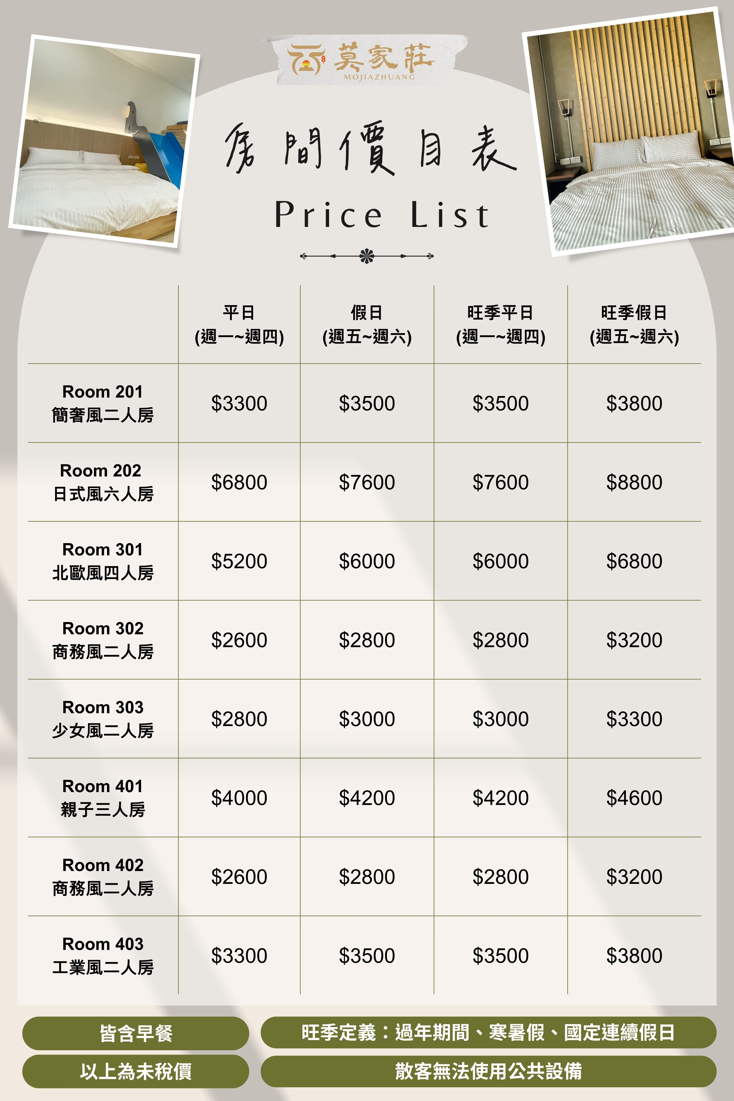 ✦ 可額外入住人數:1位 (成人/小孩+$800/位)